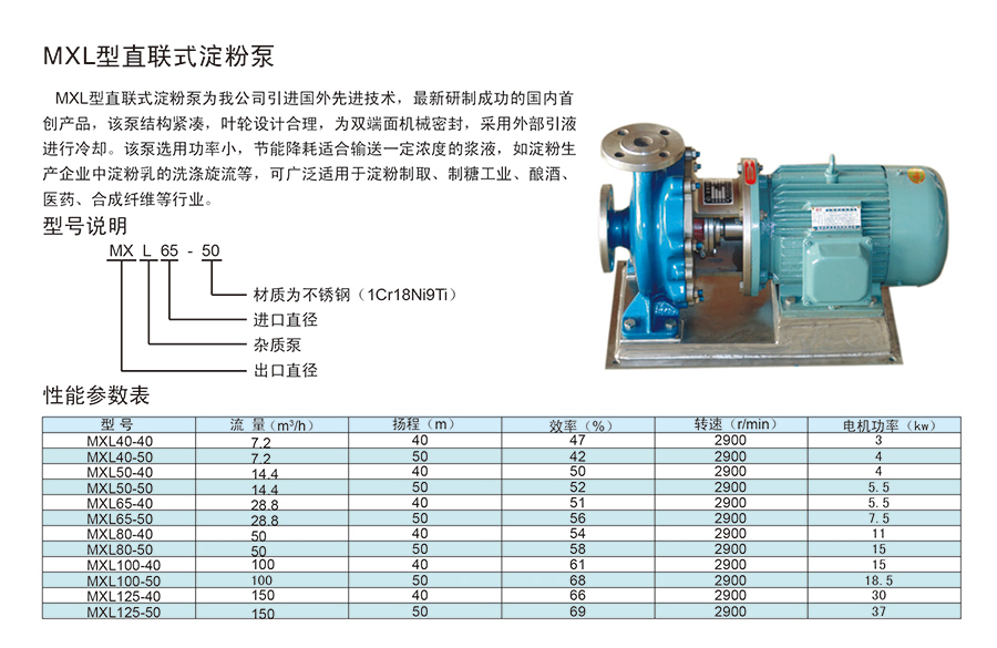 • 產(chǎn)品名稱:MXL型直連式淀粉泵