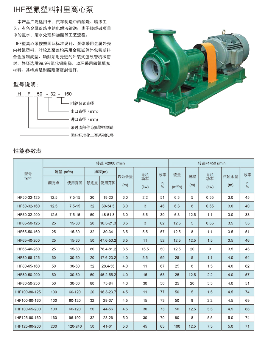 • 產(chǎn)品名稱:IHF型氟塑料襯里離心泵