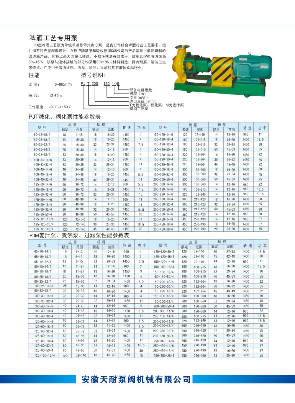 • 產(chǎn)品名稱:啤酒工藝專用泵—天耐泵閥