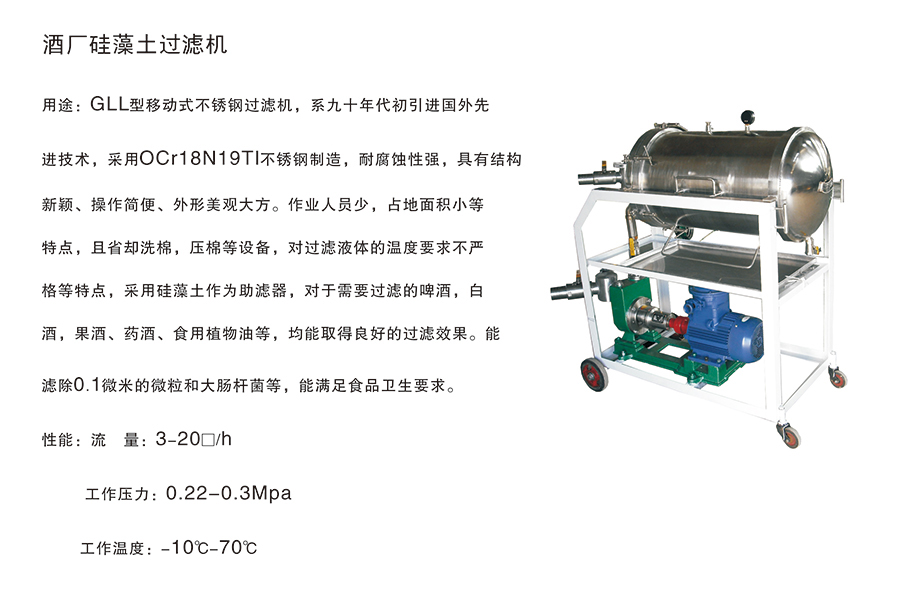 • 產(chǎn)品名稱:酒廠硅藻土過濾機(jī)