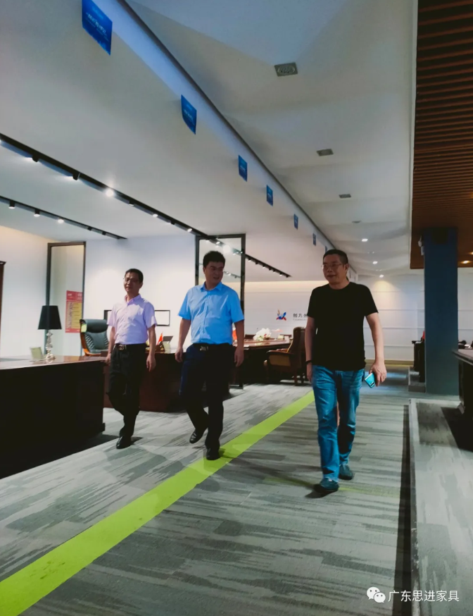 辦公家具重鎮(zhèn)——東升鎮(zhèn)的成功模式進行探討交流。隨后廖健程董事長帶領大家參觀了思進家具展廳。