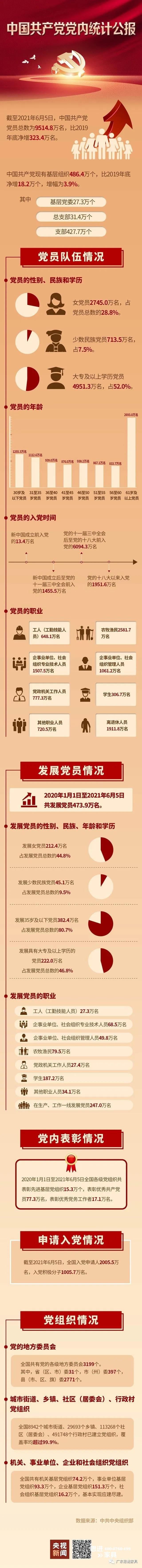 新華社北京6月30日電中央組織部最新黨內(nèi)統(tǒng)計(jì)數(shù)據(jù)顯示,截至2021年6月5日,中國(guó)共產(chǎn)黨黨員總數(shù)為9514.8萬(wàn)名,黨的基層組織總數(shù)為486.4萬(wàn)個(gè)。歷經(jīng)百年風(fēng)雨,中國(guó)共產(chǎn)黨從小到大、由弱到強(qiáng),從建黨時(shí)50多名黨員,發(fā)展成為今天已經(jīng)擁有9500多萬(wàn)名黨員、在14億多人口的大國(guó)長(zhǎng)期執(zhí)政的黨。