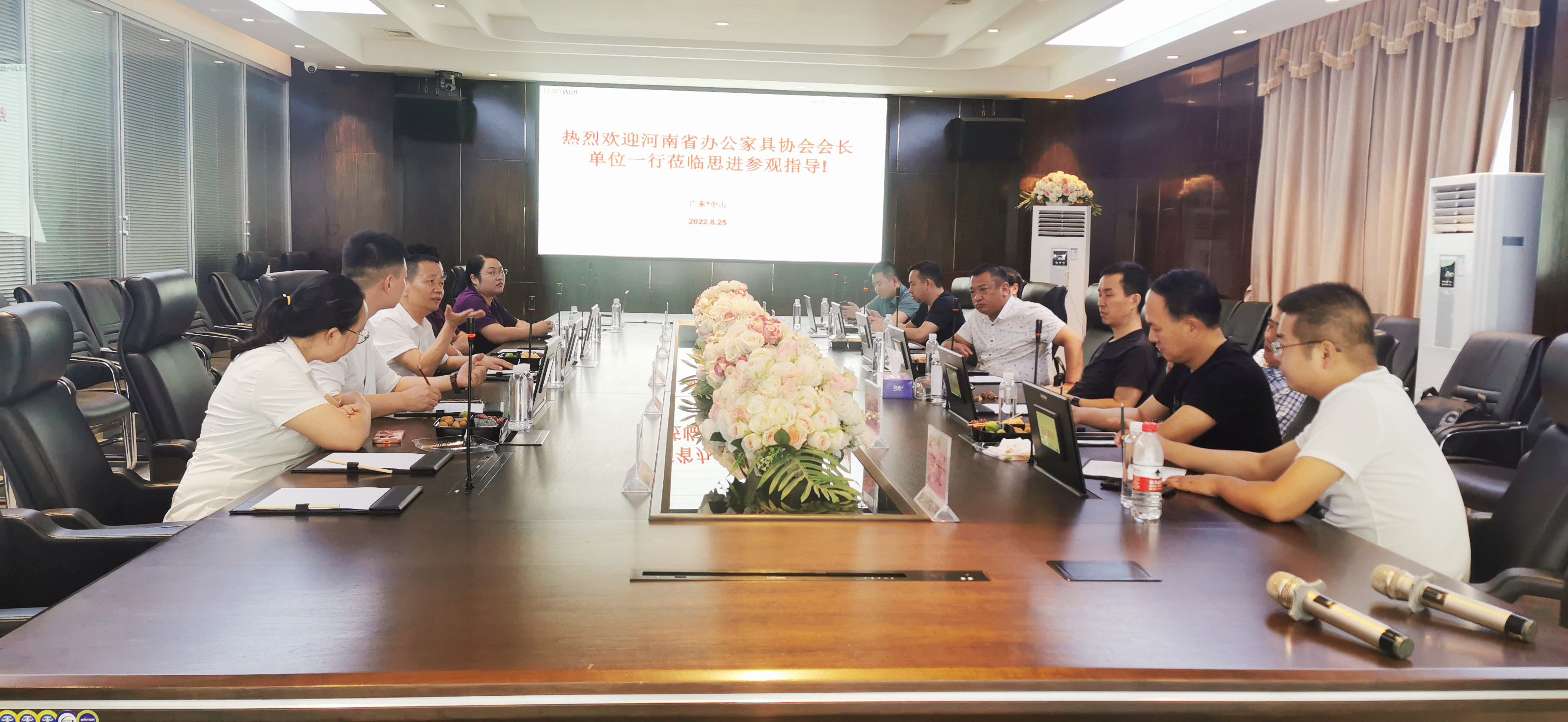辦公家具協(xié)會(huì)會(huì)長(zhǎng)張鋒帶隊(duì)的考察團(tuán)一行到訪思進(jìn)家具集團(tuán),考察團(tuán)成員有會(huì)長(zhǎng)張鋒(河南震美辦公空間設(shè)計(jì)總經(jīng)理)、秘書長(zhǎng)采彥峰(河南美斯頓家俱總經(jīng)理)、監(jiān)事長(zhǎng)張曉(河南誠(chéng)業(yè)家俱總經(jīng)理)、常務(wù)副會(huì)長(zhǎng)陳海亮(河南雅寶家俱總經(jīng)理)、常務(wù)副會(huì)長(zhǎng)胡云亮(洛陽(yáng)科亞飛家具總經(jīng)理)、常務(wù)副會(huì)長(zhǎng)王金鋼(河南優(yōu)美辦公總經(jīng)理)、副會(huì)長(zhǎng)嚴(yán)龍(河南點(diǎn)晴電子科技總經(jīng)理)、副秘書長(zhǎng)張小遠(yuǎn)(鶴山市四方家具總經(jīng)理)。思進(jìn)家具集團(tuán)總裁戴金榮出席接待,雙方進(jìn)行交流洽談。